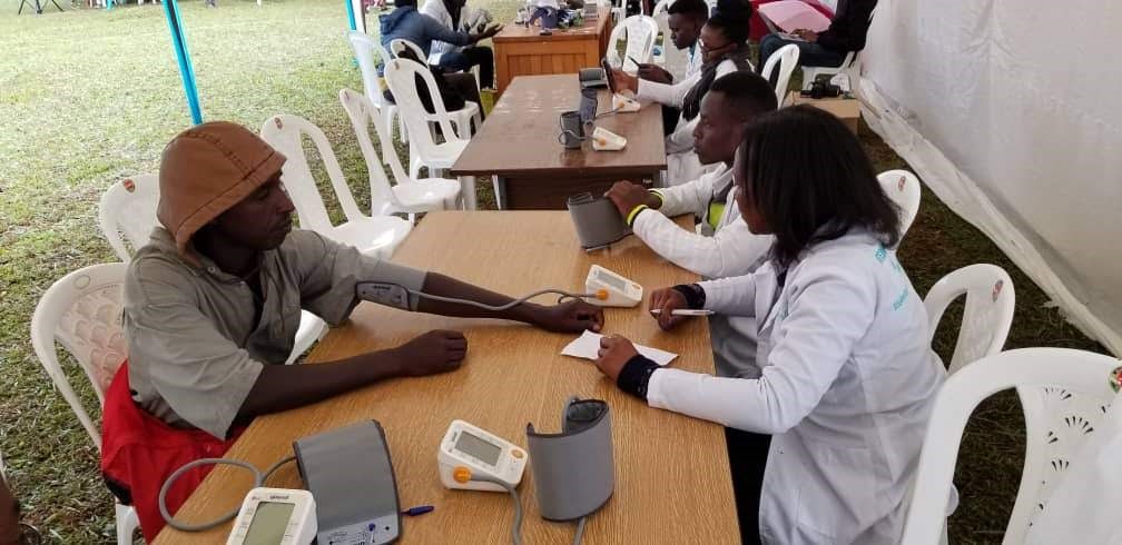 As the title says, this was an outreach organized by University of Rwanda in collaboration with Medical Students’ Association of Rwanda(MEDSAR) and Nursing and Midwifery Students Association of Rwanda. (NMSAR). The outreach was for screening the population in Huye district and the districts around on Non communicable diseases (NCDs) and the work was carried out by a team of medical, nursing, and midwifery Students from University of Rwanda on 28th and 29th of Marc 2019. The team was made, generally, of 30 students, 25 medical students, 5 midwiferies and nursing students. It was supervised by one of the medical students, the director of Public health in MEDSAR, Mbanza Setonde Steven, and a staff team from University of Rwanda led by Renee Nshimiye.